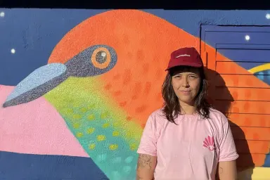 Caroline Lemes, é artista visual, designer gráfica, muralista, feminista e poeta. Em seu trabalho visual explora a conexão do ser humano com a natureza, mitologias, simbolismos e arquetípicos, a cultura dos povos originários do Brasil, o protagonismo feminino e a maternidade. Considera a rua o lugar mais democrático da arte.